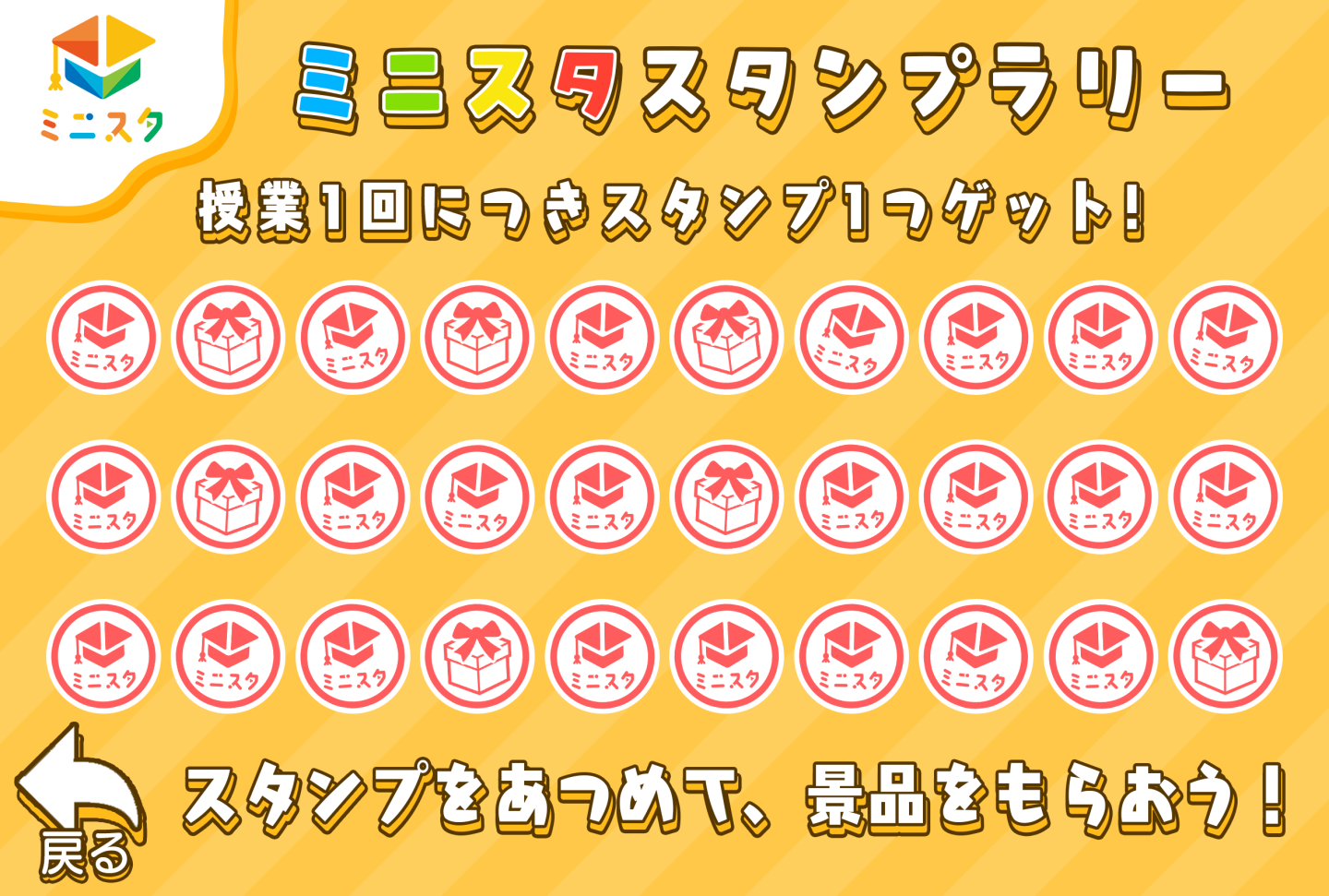 勉強も習い事も、「続けること」が一番難しいですよね。 そこでミニスタでは、授業への参加そのものをゲームのクエストのように楽しめる「スタンプラリー制度」を導入しています。